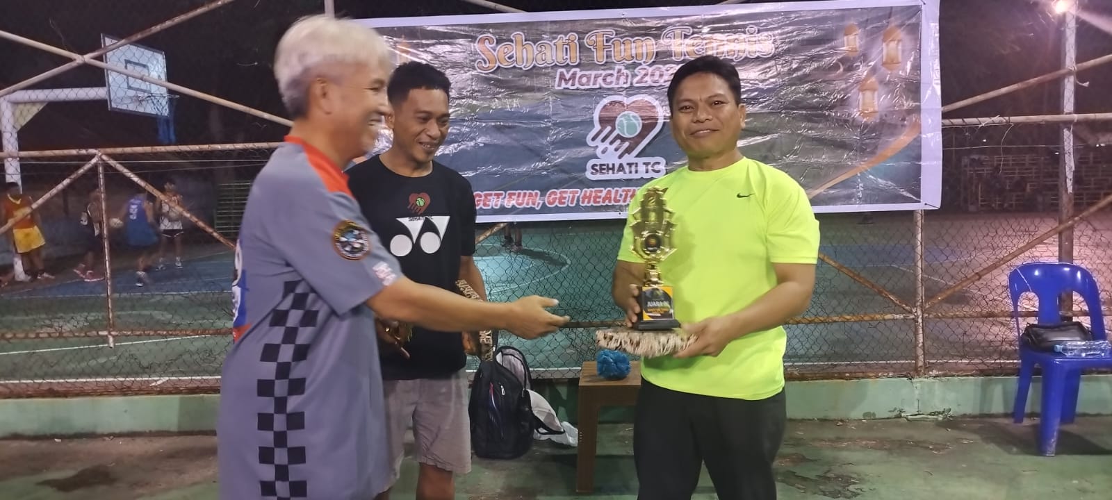 Lanjut, Rahmat juga mengucapkan kepada pemenang juara 1,2,3 dan 4 yang telah membuktikan kualitasnya dalam laga internal Sehati tenis club tersebut.