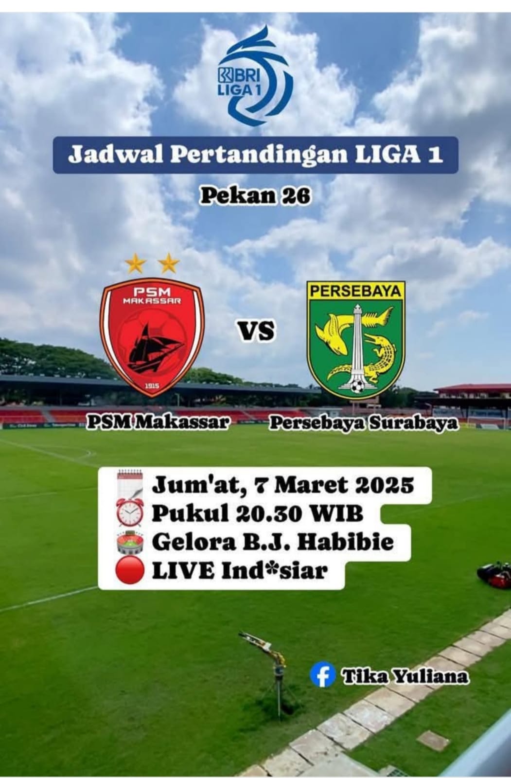 Rencana kick off pada hari Jumat (7/4/2025) pukul 20:30 wita, yang disiarkan langsung TV swasta.