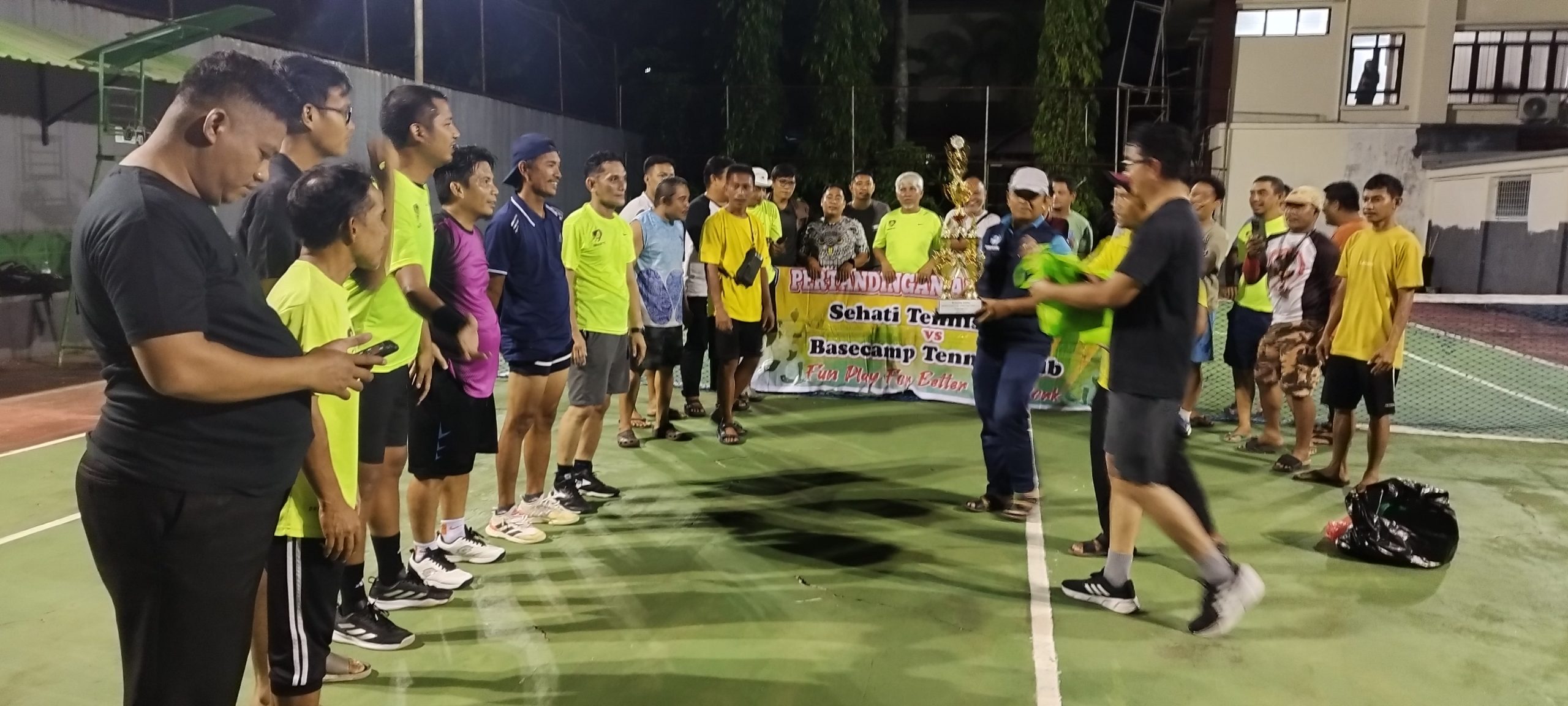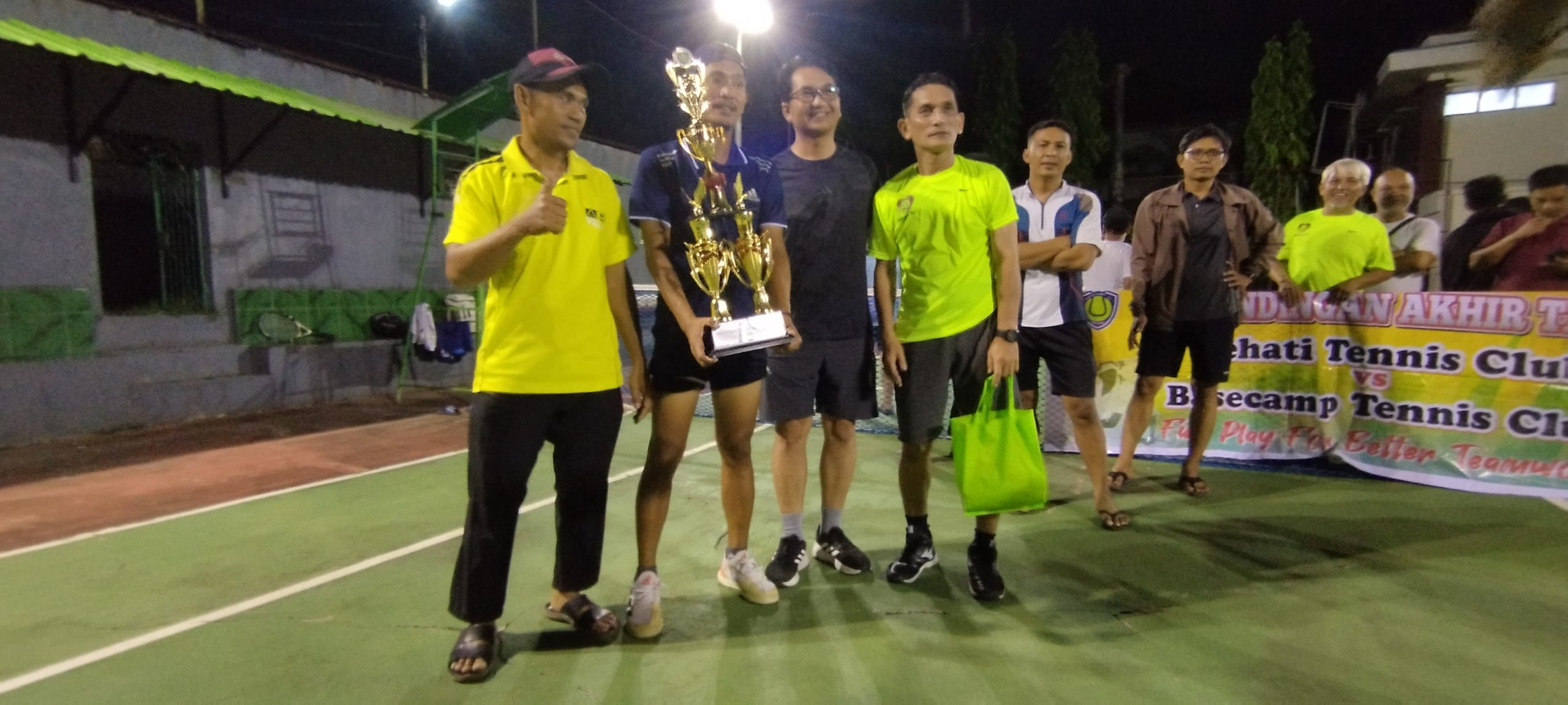 PAREPARE, timeberita.com – Pasangan Erwin-Yahya dinobatkan sebagai juara baru Turnamen Tenis Internal Sehati-Basecamp Tennis Club 2025. Gelar tersebut mereka rebut setelah melewati final yang menegangkan melawan Otnil-Irsan di Lapangan Tenis Pengadilan Negeri (PN) Parepare, Kamis (4/12/2025) malam.